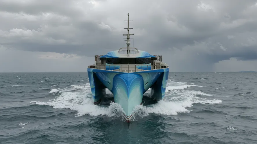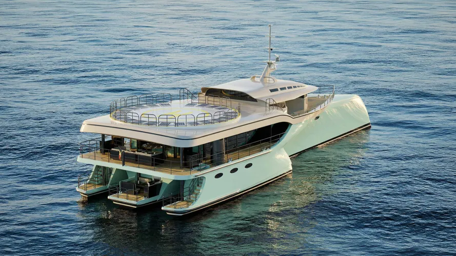 - Trimaran design for a natural, exceptional stability and an utmost seaworthiness