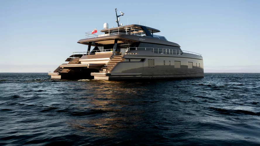The 100 Sunreef Power Twilight is a brand-new yacht. Built for long-range, stable cruising, she offers spacious and thoughtfully designed interiors, including a bright full-beam salon and a principal cabin with private access to the bow terrace.