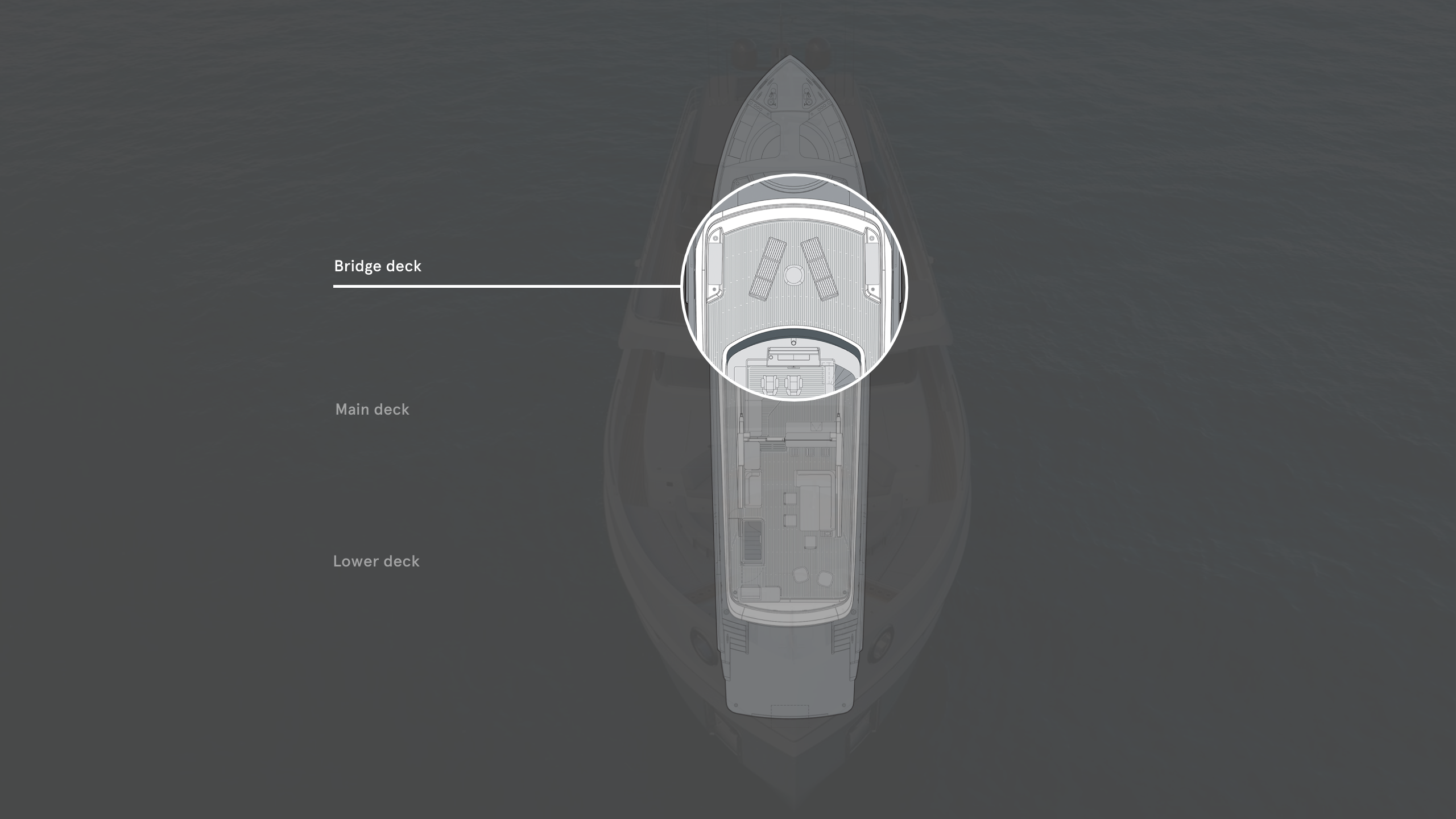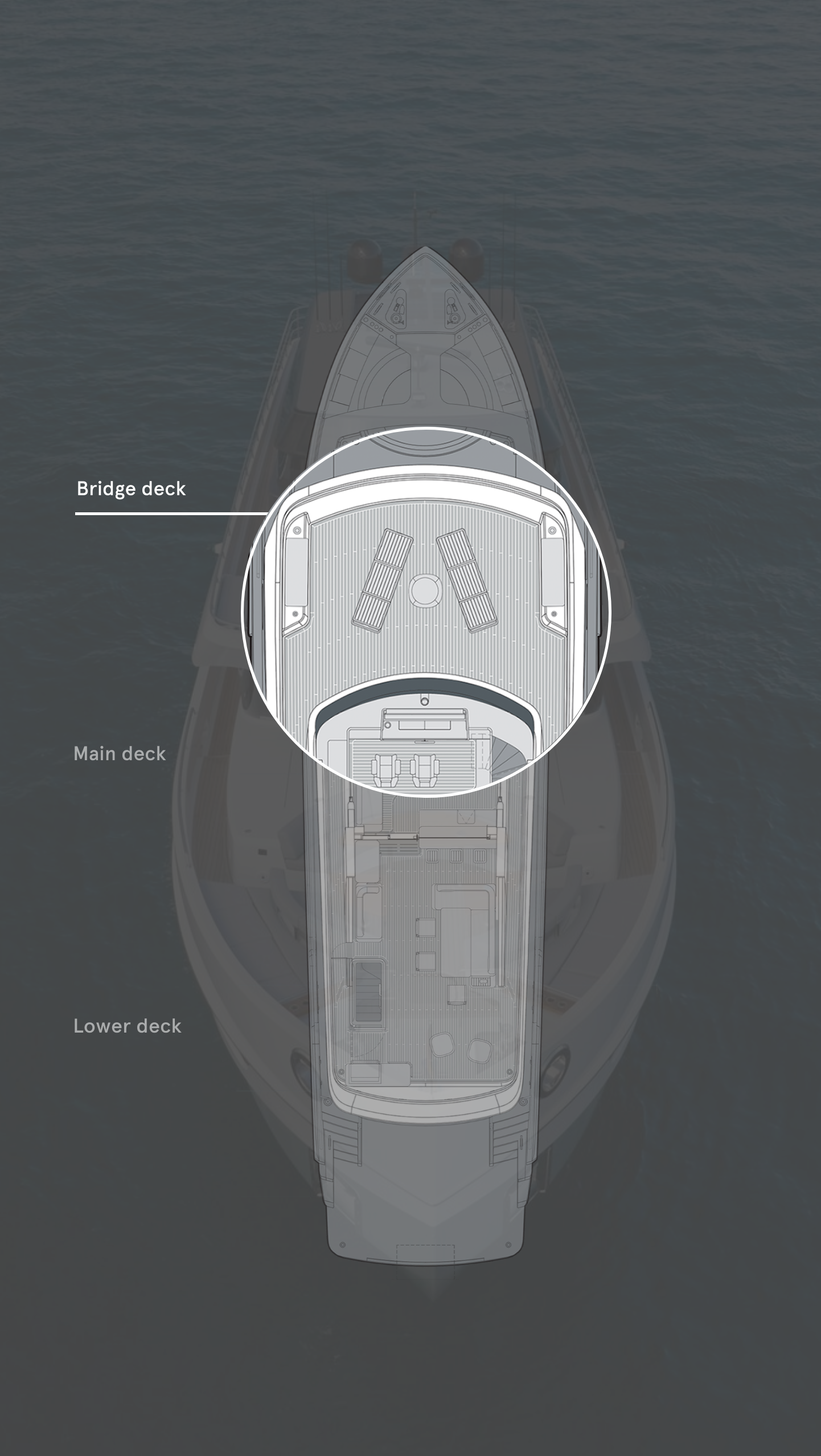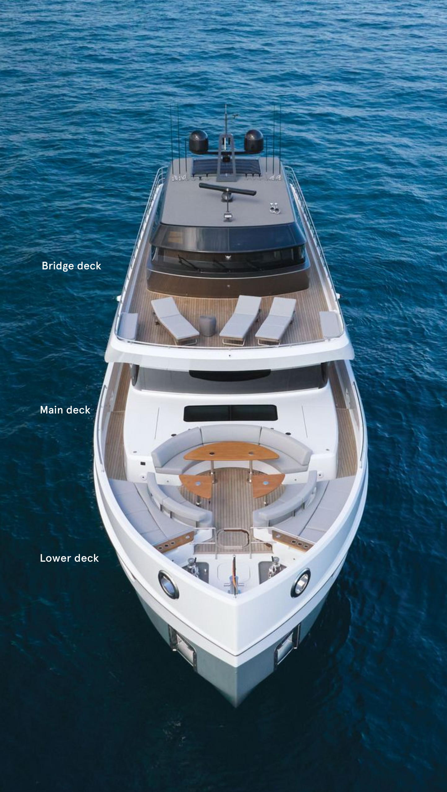Moving forward, there is a Portuguese bridge overlooking the Piazza del Sole, which can be set up simply with a few lounge chairs. If an owner wants one, there is room here for a spa pool and it can be engineered without changing much of the boat’s trim and performance. “Add it up and we will make it work,” Horsmon says.