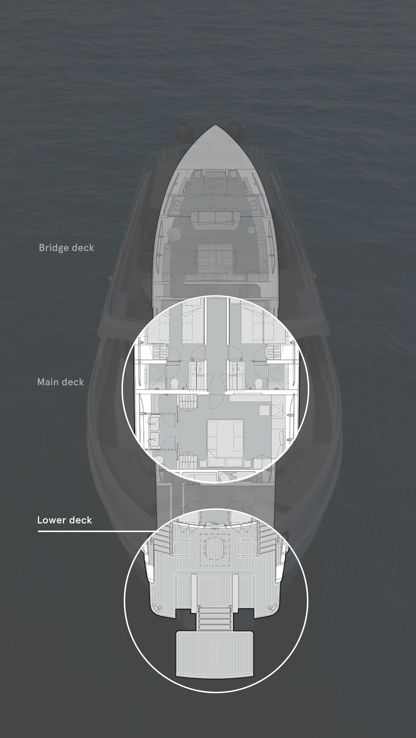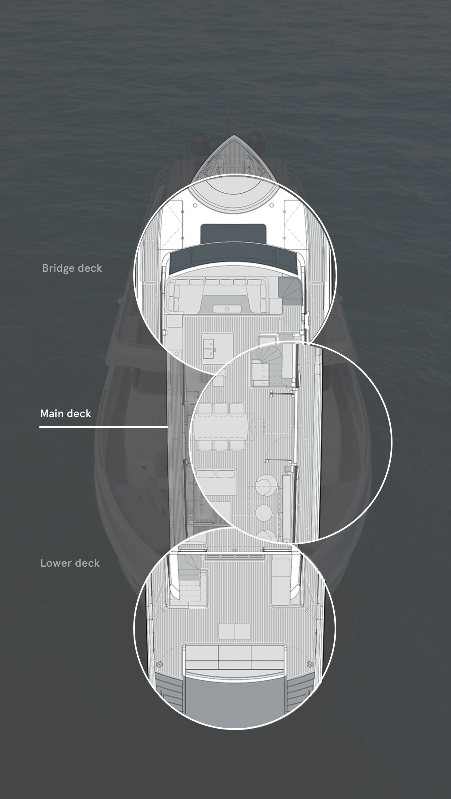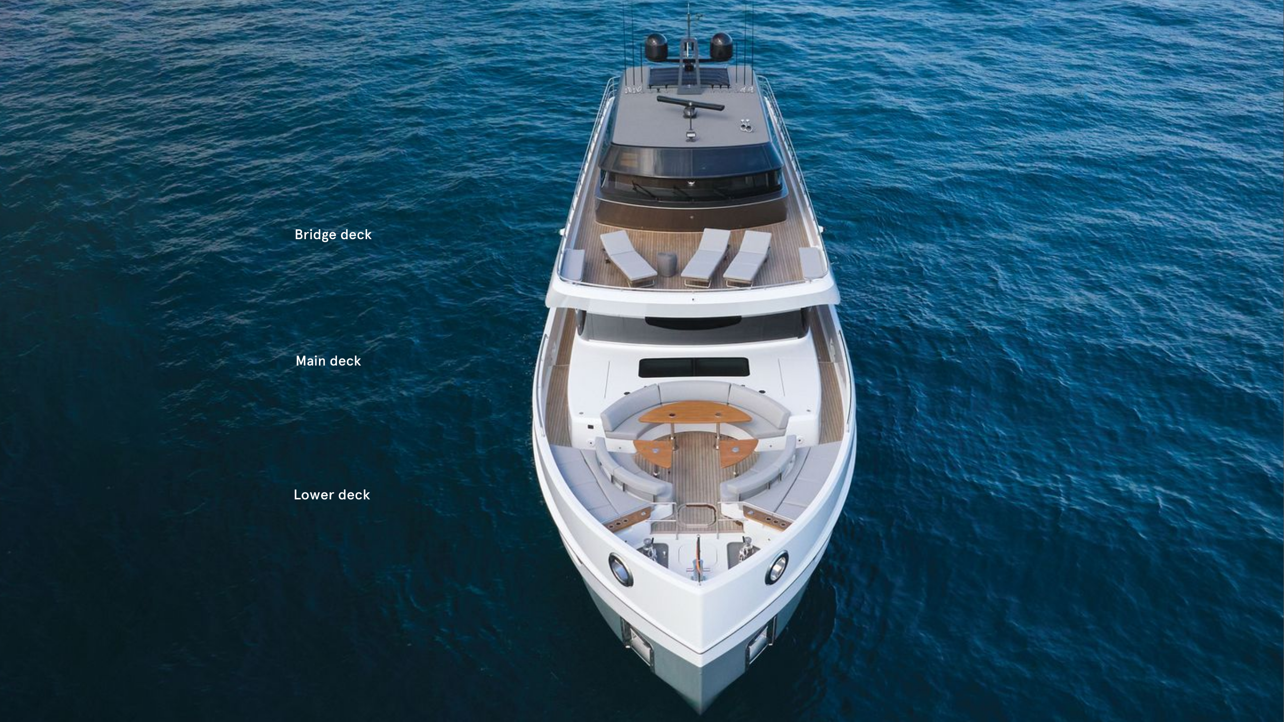 Moving forward, there is a Portuguese bridge overlooking the Piazza del Sole, which can be set up simply with a few lounge chairs. If an owner wants one, there is room here for a spa pool and it can be engineered without changing much of the boat’s trim and performance. “Add it up and we will make it work,” Horsmon says.