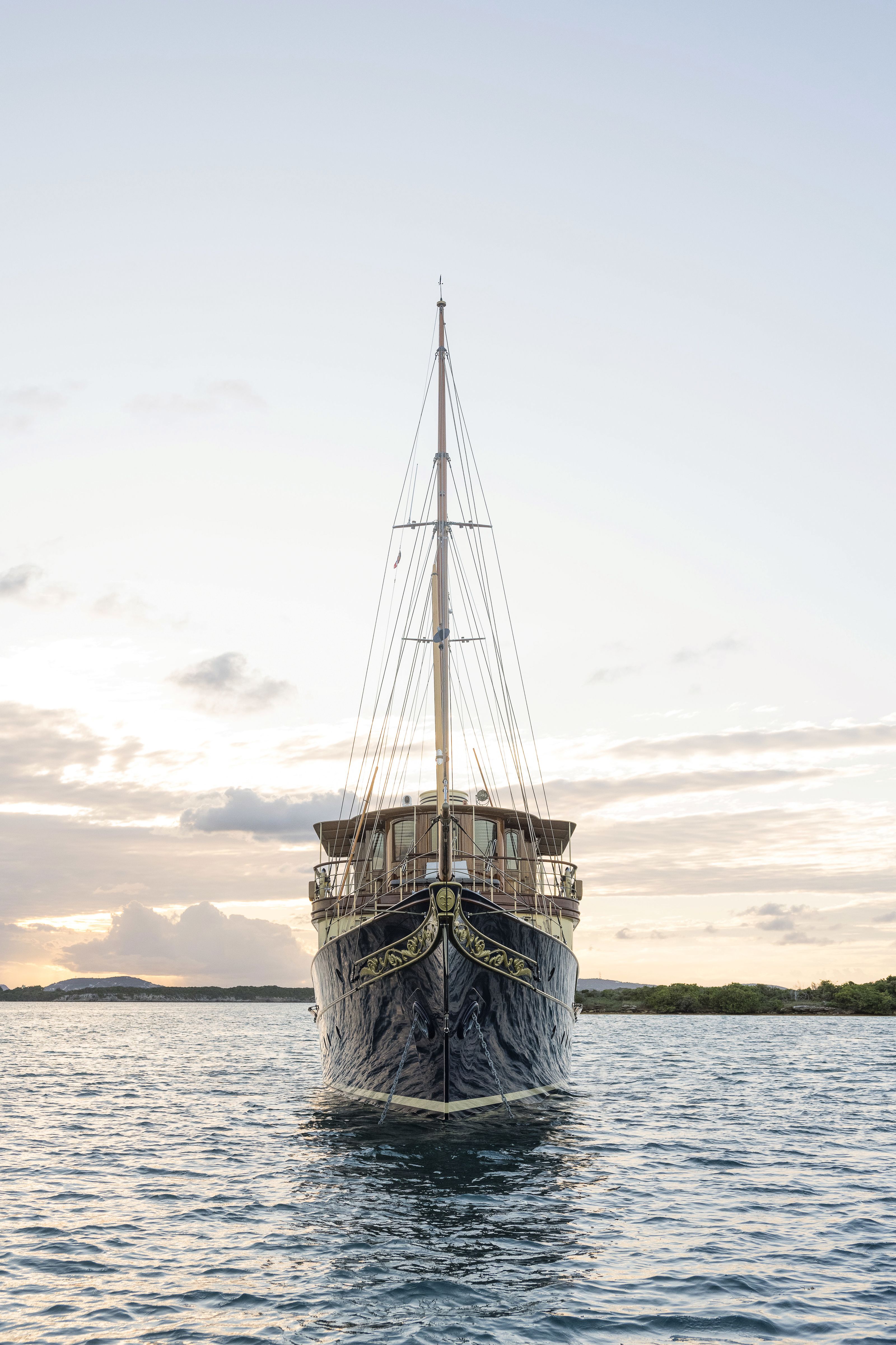 Caleta would provide accommodation for the owner and his guests at each regatta. In a story of ownership that comes full circle, Jim and Kristy Clark, the current owners of Atlantide, plan to use her as a tender again, this time to their J Class sailing yacht Hanuman at Bucket races.