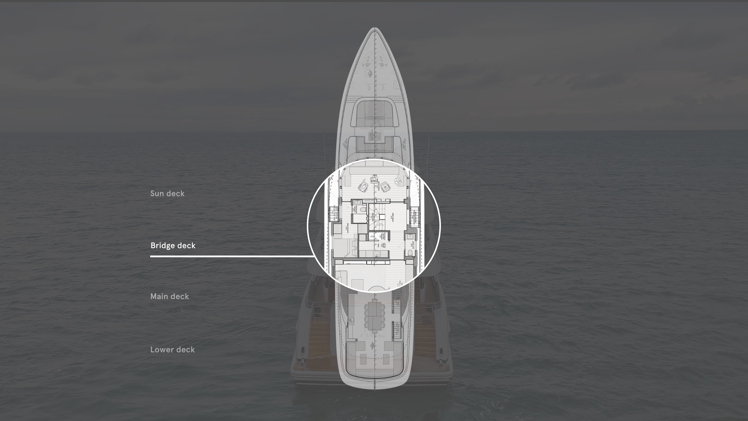 As in a theatre, where you ignore what is behind, above and below the stage, it’s easy to forget Ace is a complex mix of machinery and technology, especially since the shipyard has taken great care in hiding all the technical elements, following the design’s imperatives. In the owner’s suite on the main deck, for instance, the speakers are invisible, concealed by linen stretched over them. “We did a lot of research and found speakers that work with plywood and fabric to produce good- quality sound. You will not see anything here, but it sounds perfect,” says Conrad project manager Pawel Polak.