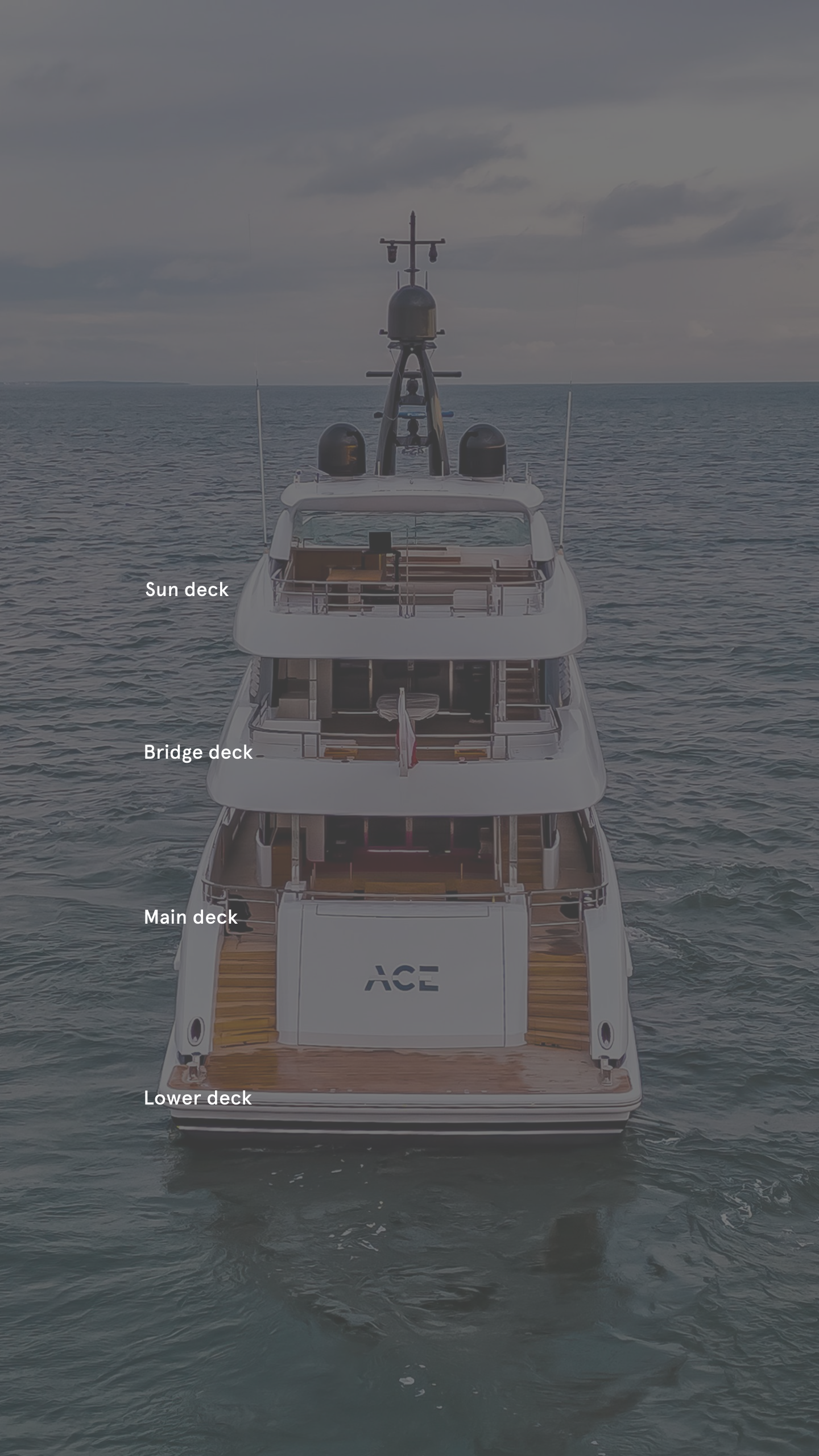 These qualities will also make Ace a very good option for charters. “She provides much more volume than yachts of a similar size and certainly rivals some of the larger vessels,” Gendek says. “The multiple entertainment options across her three decks will satisfy the most experienced guests looking for a luxury getaway. To name a few: a spectacular sundeck with spa pool and 100-inch outdoor cinema screen; a generous swim platform for easy access to the ocean; and a garage fully stocked with all the latest water toys. Ace also comes with a sleek 10.3-metre Nor-Tech Sport chase tender.”