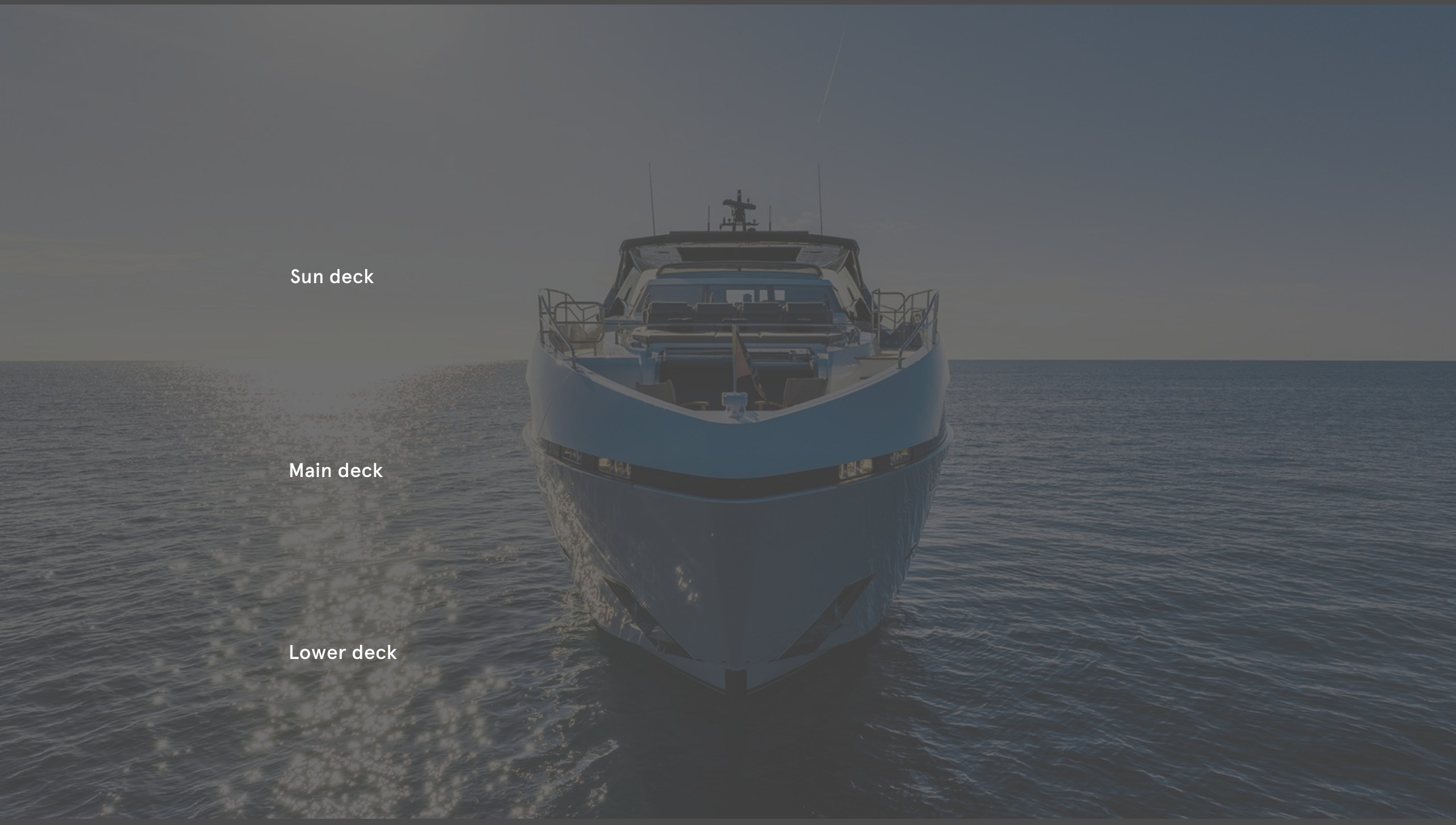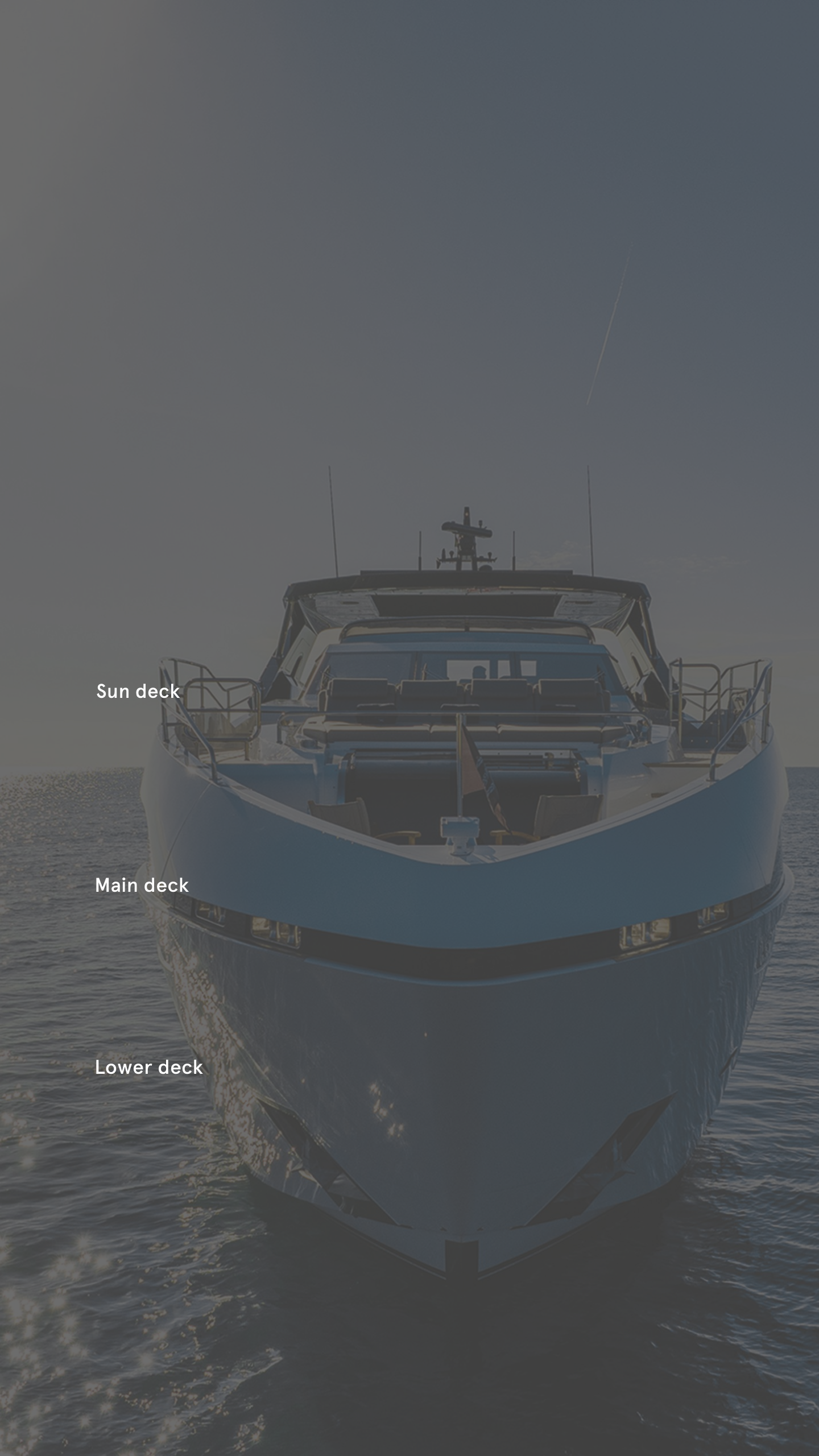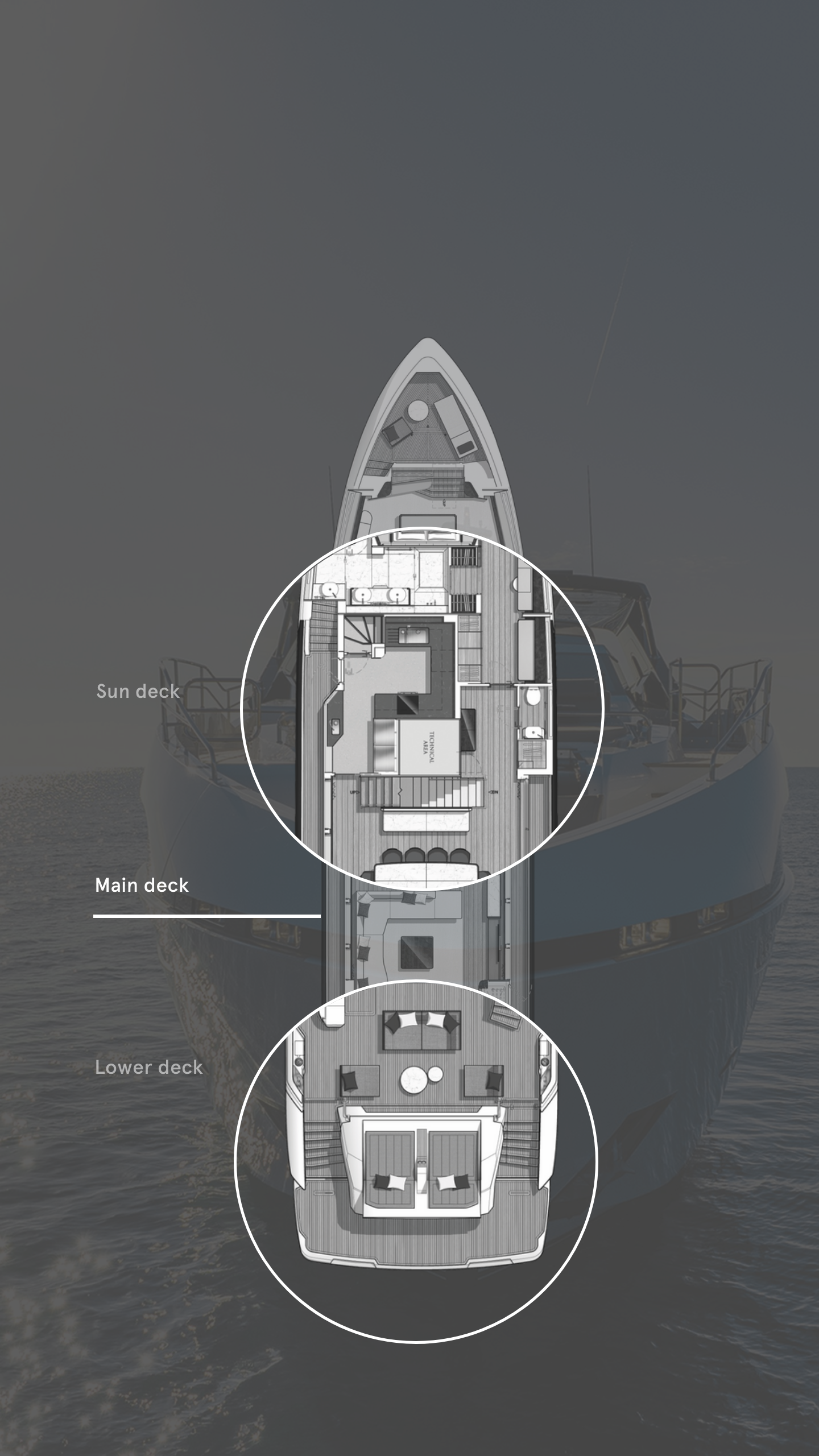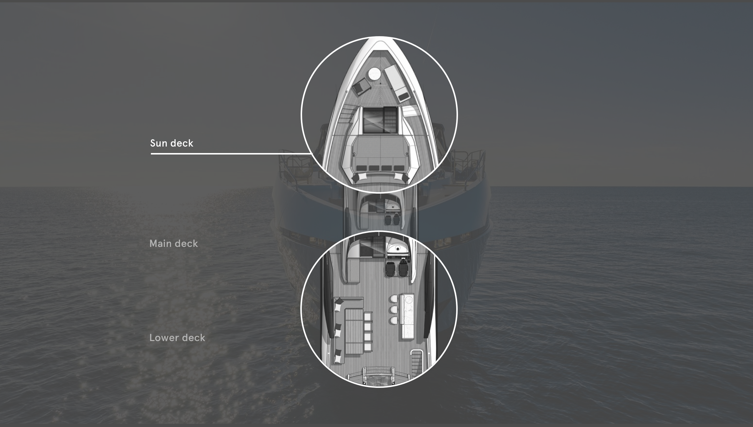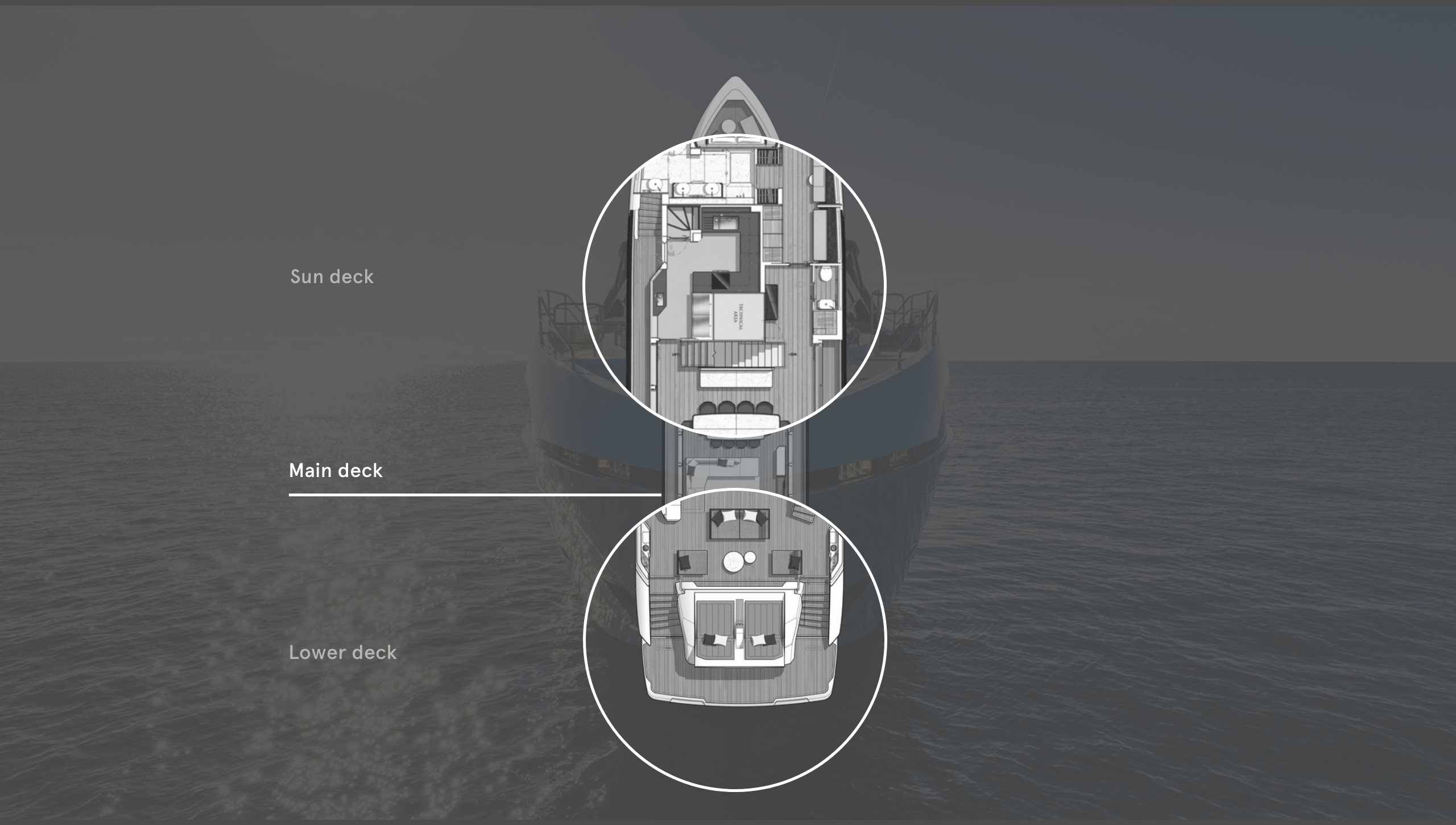 The yacht has a rather revolutionary design that connects the top deck to a private al fresco owner’s area at the tip of the bow