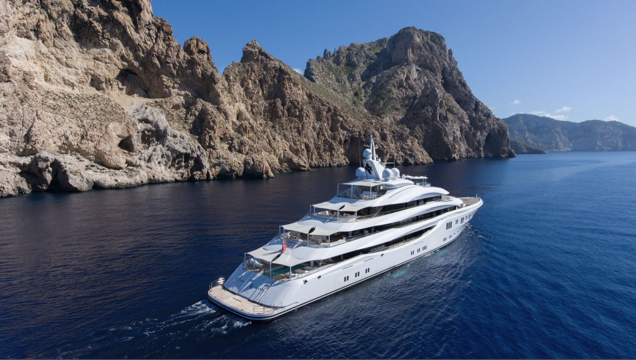 She is, it turns out, an elegant lady with surprises at every turn, from immense Damien Hirst artworks commissioned for the yacht to a swimming pool that transforms into a discotheque and a snowy white interior that nods to classic Hollywood glamour – all in harmony with her sculpted superstructure. It’s no mean feat that Lady Lara is feminine without being girly, glamorous without being blingy, clean without being boring and architectural without being cold.