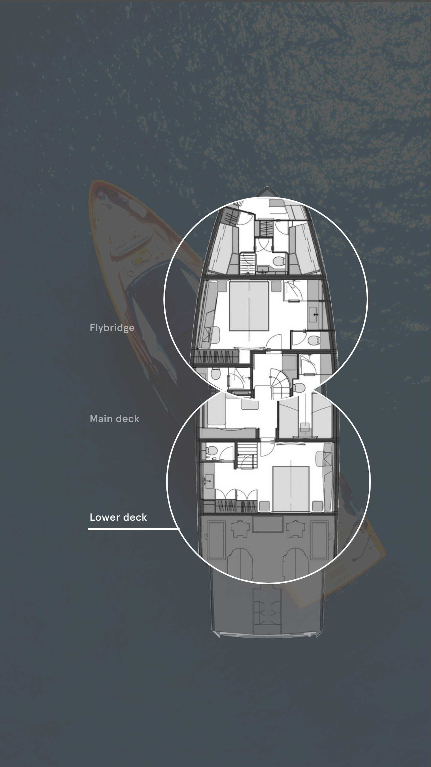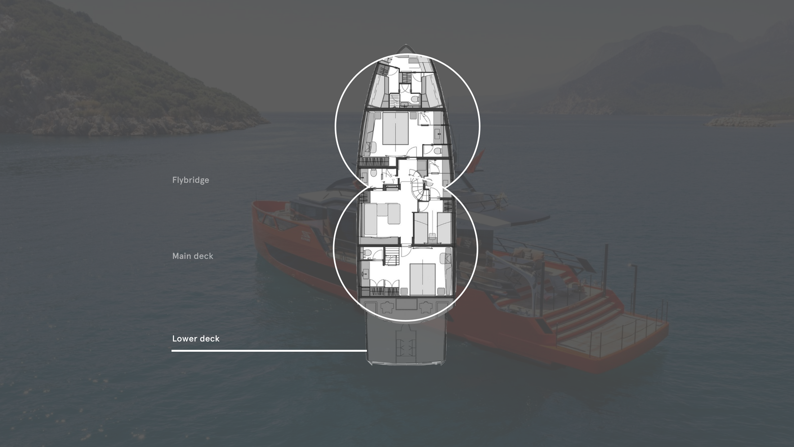 With careful space planning, the design team was able to pack a surprising amount of living space into only 123 gross tonnes. The lower deck hosts a lounge that, when pocket doors close, converts into a fourth cabin. “The convertible cabin in the lower deck gives an opportunity of a second lounge, which is a unique feature for this size,” says Gökhan. When configured as a living area, it makes an ideal second saloon or a cinema/games space. Owners can have their cake and eat it, too, not having to decide between three or four cabins. A twin cabin, forward VIP and full-beam master amidships round out the accommodation.