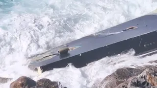 Video footage from onlookers unveiled pieces of the Ferretti build scattered across rocks in the water near Cape Agia Marina - an area known for its rugged and rocky coastline.