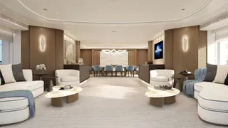 Accommodation is for up to 12 guests across six cabins, including a 60-square-metre master suite located forward on the main deck, which spans the yacht's full 9.5-metre beam. Meanwhile, further quarters accommodate a crew of 13.
