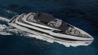 As such, the model is host to generous living spaces, including extended outdoor decks and large glass surfaces to enhance the connection with the environment. Exterior deck areas include al fresco dining on the upper deck aft and a large bow area optimised for sunbathing and entertaining. Crowning the build is a 16-metre-long sundeck equipped with further sunbathing opportunities, a lounge with sofa seating and armchairs, a dining table, a bar and a round Jacuzzi.