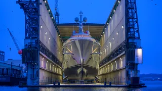 Images now reveal Jassj's traditional flared bow topped with a foredeck helipad, while taut lines and an extensive use of curved glass define her cool grey profile. The 3,420GT yacht was sold in 2021 by Moran Yacht & Ship and began construction in 2022, according to BOATPro. Delivery is expected in Q3 of 2026.