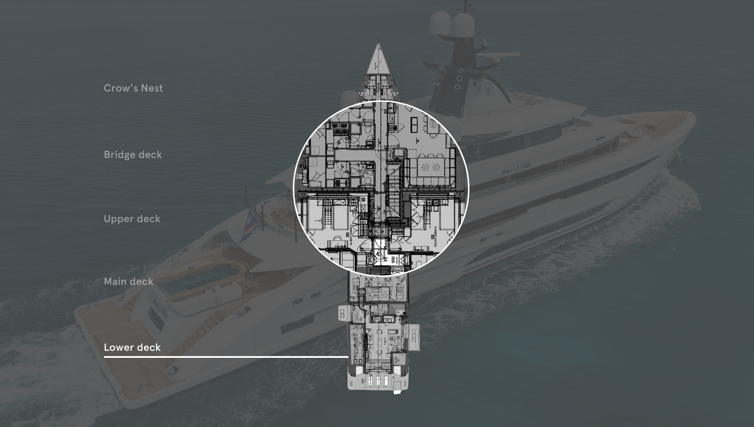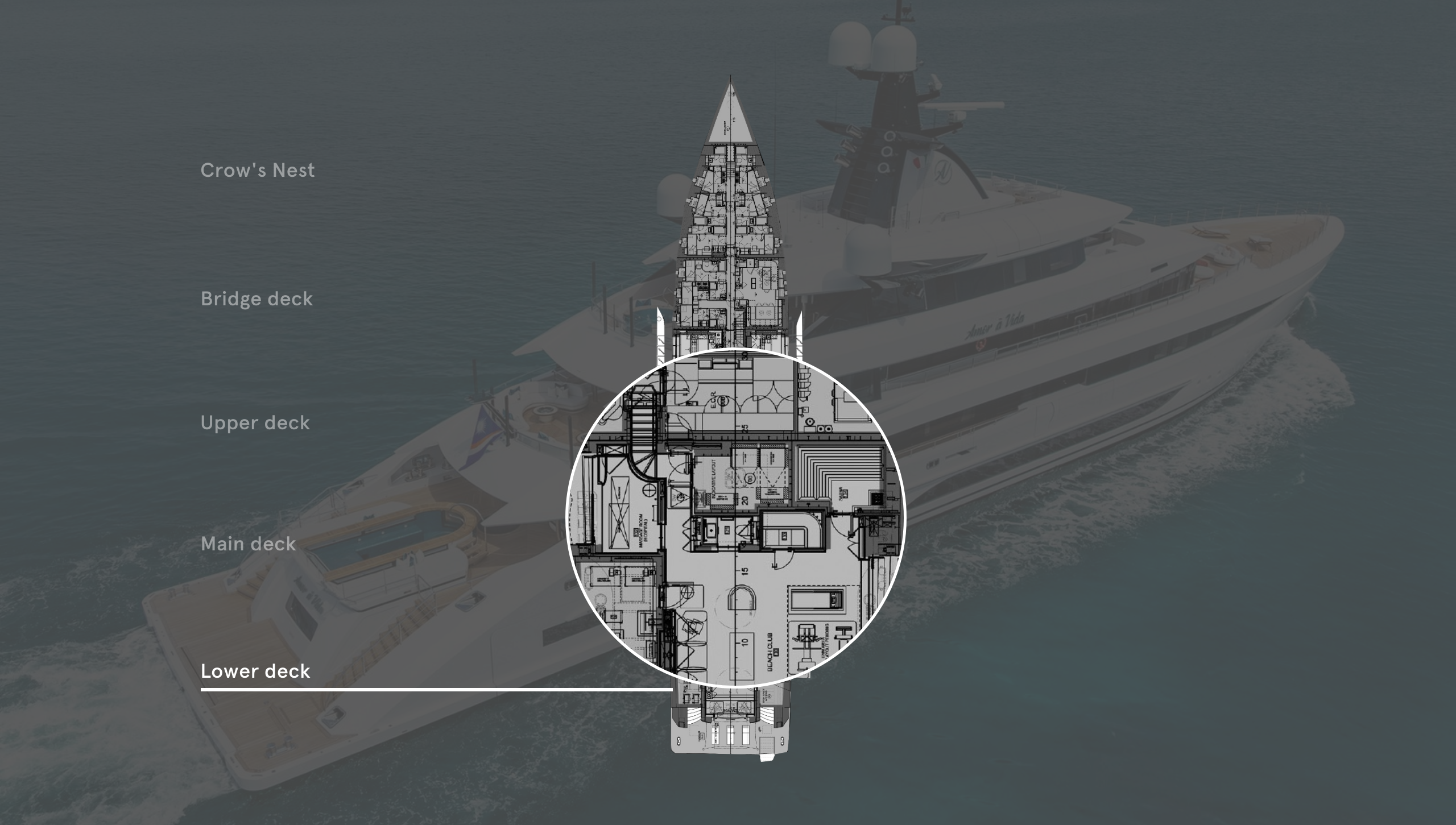 “That’s partly because the main guest stair and elevator column features a continuous pattern of sycamore and suede stripes throughout, so the owner wanted a difference in the dayheads instead,” Costanza Pazzi, project architect at CRN, explains. “For example, as the main deck will be used for parties, that head gets something wow with a freestanding backlit onyx column sink, whereas the bridge deck dayhead is a little more sporty.”