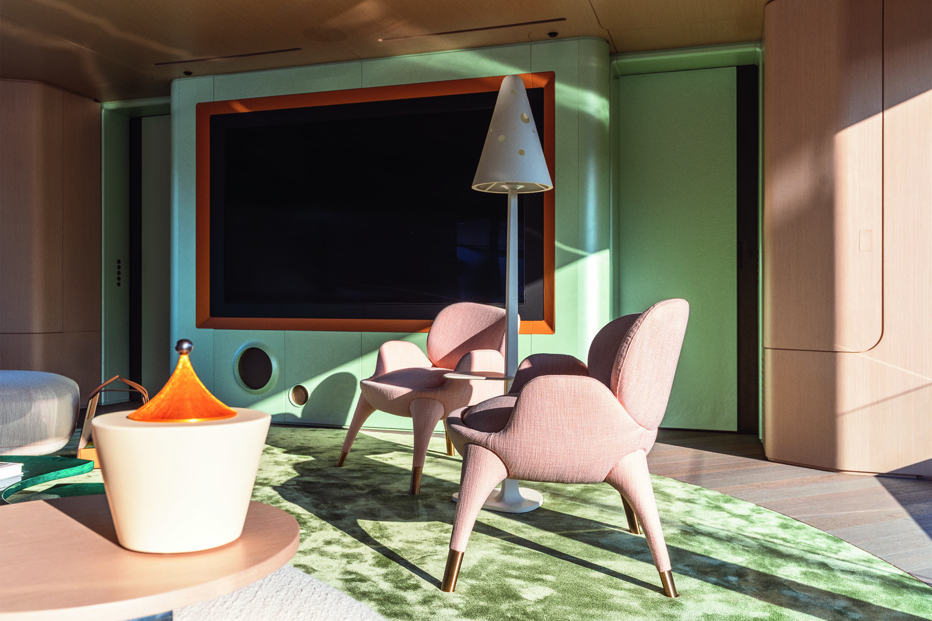 There are quirky lamps abound, like the mushroom-shaped one growing out of furniture in the upper deck saloon || COURTESY OF ACHILLE SALVAGNI