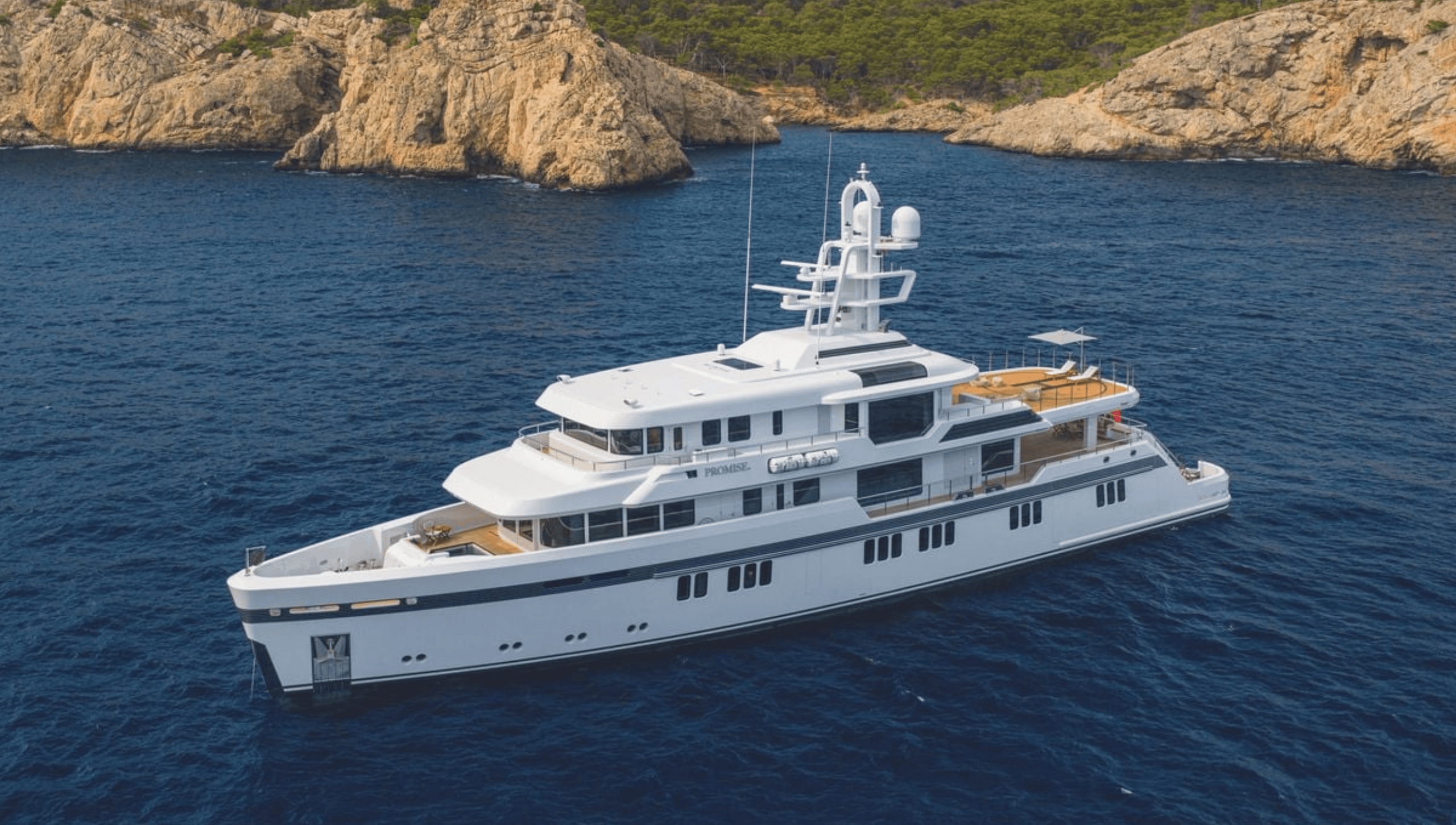 Now listed for sale, the yacht is primed and ready for a new chapter. “It’s so refreshing that everything aboard Promise. was done with a purpose,” says Hutchinson. “For me, that’s what embodies building a custom yacht. The owners had a huge amount of input in the design and really took advantage of that.”