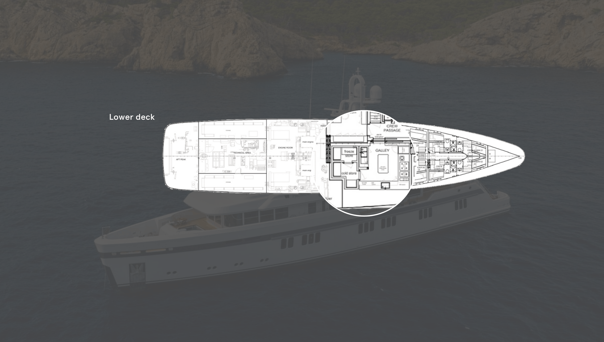 Captain Walsh, who previously helmed the 79.2-metre Delta Marine Albatross and the 72-metre Austal Serenity, also commends the owners’ decision to place crew areas alongside the main deck guest cabins. “For me, certainly coming from larger boats, having the crew lobby adjacent to the guest areas without any crossover is impressive and functional.”