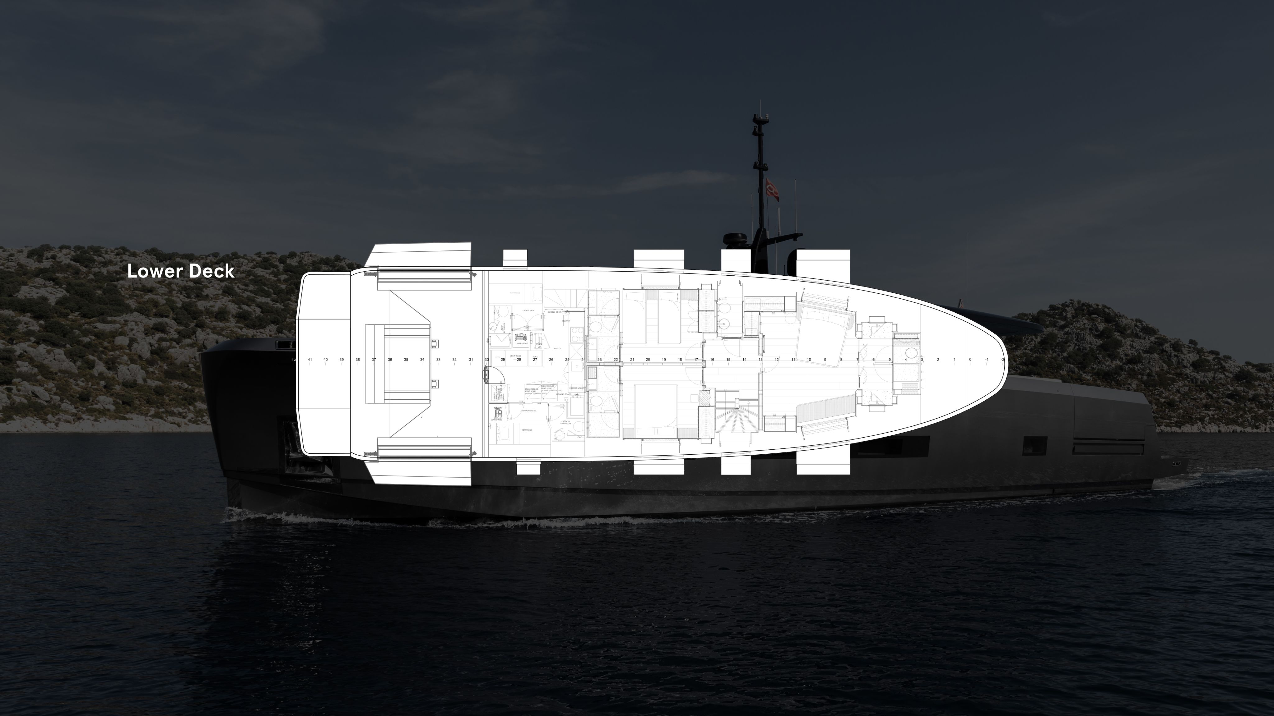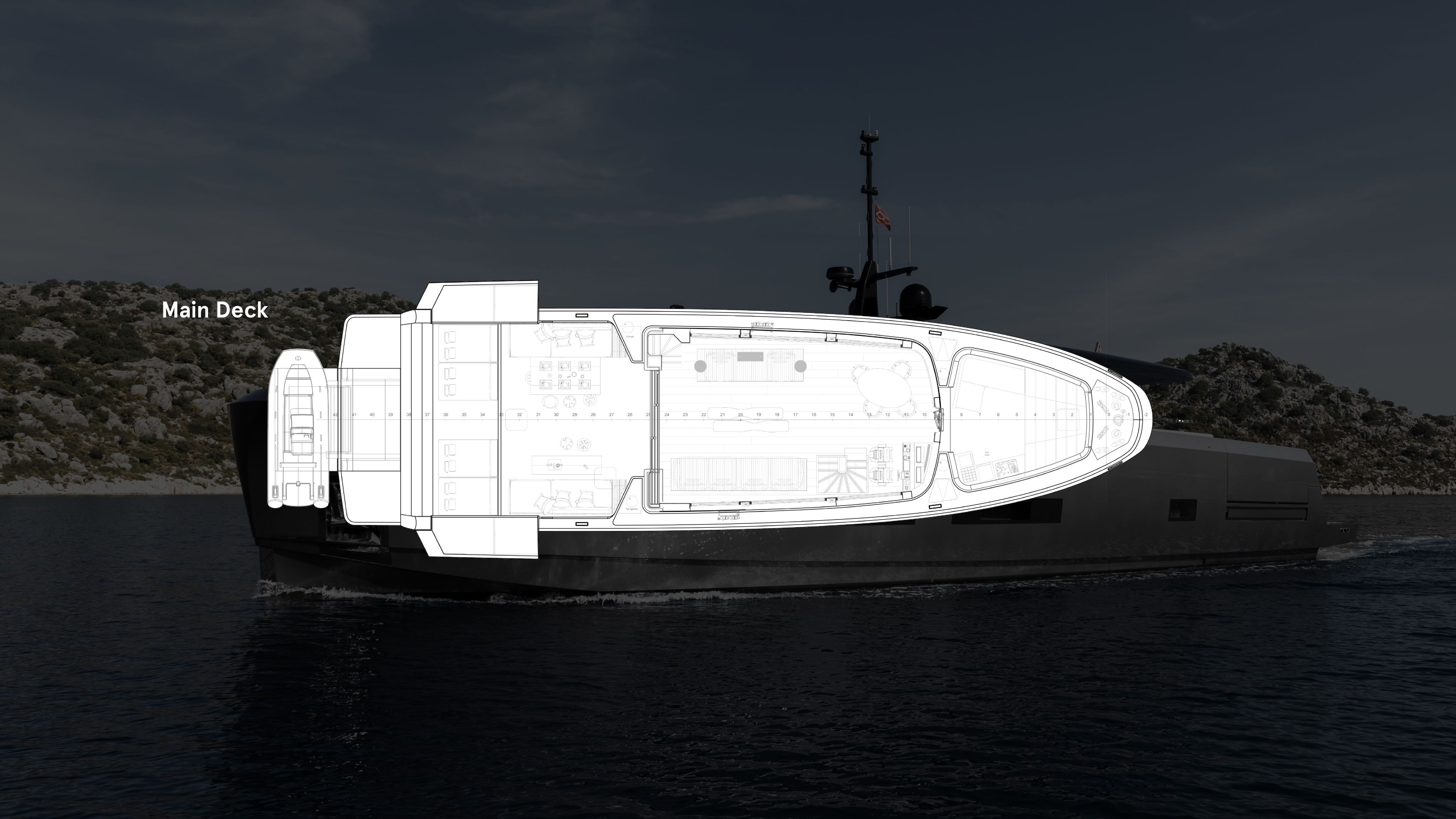 The core brief was for a beamy boat, he explains, with high headroom – and a single deck for daytime living, with no structural interruptions inside. Ultimately, it was British studio Dixon Yacht Design that was tasked with figuring 0110 (and her owner) out.