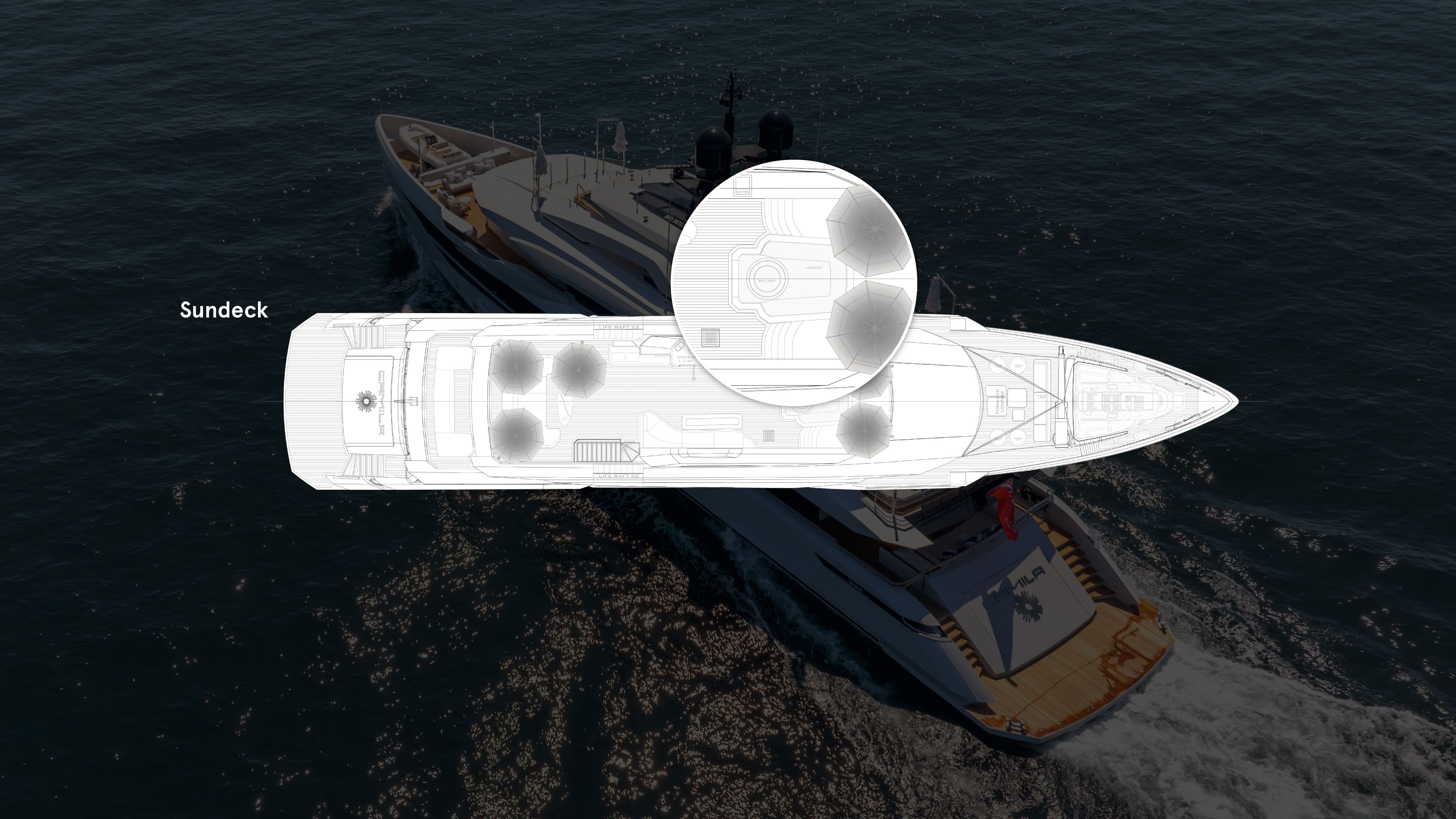 At the request of Camila’s owner, Özgün and Bilgin optimised the layout, reconfiguring storage and water toy placements, and moving tenders forward to free up the aft sections for more spacious, serene guest areas.
