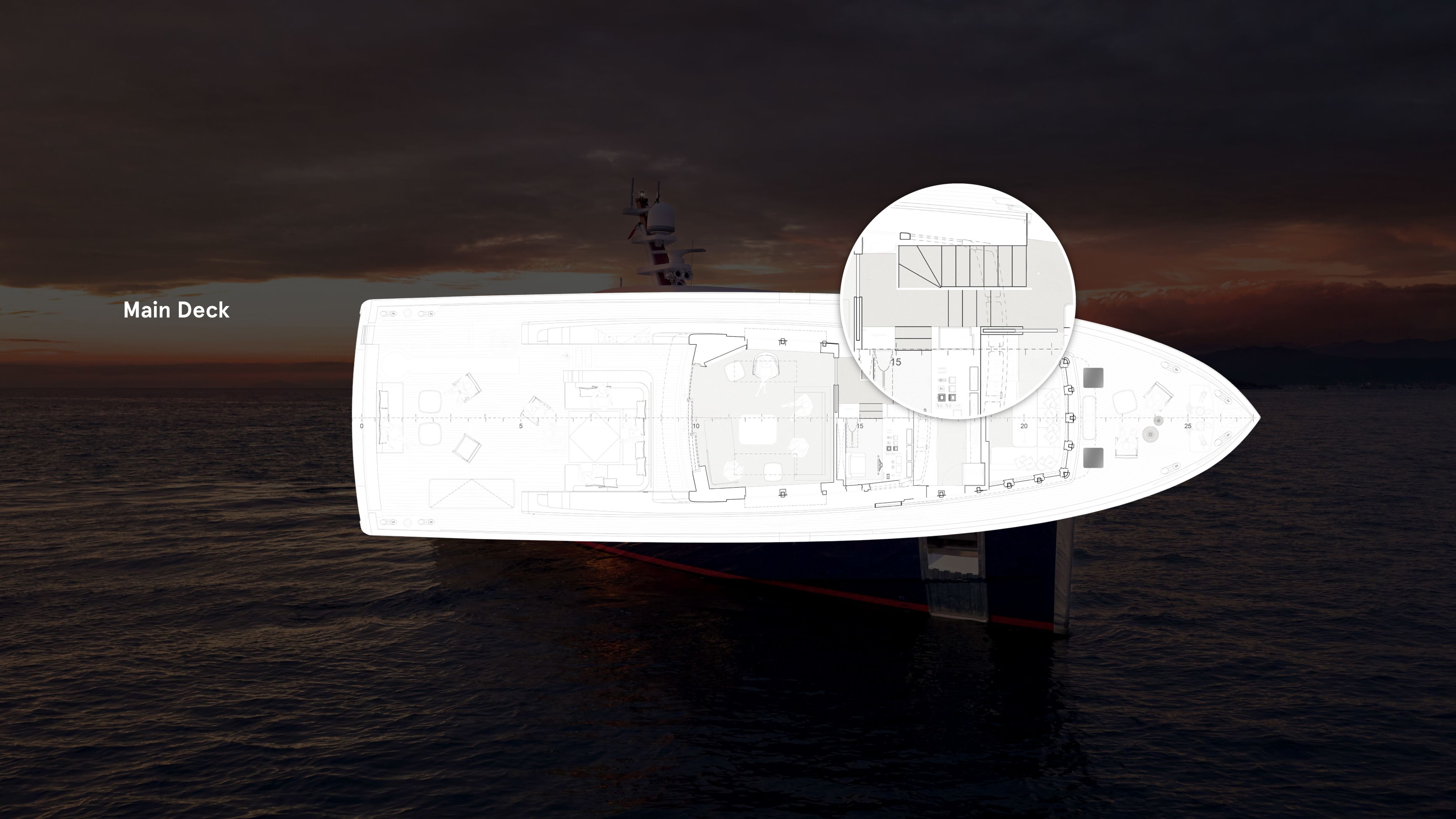 Range at 9 knots 1,800 nm | Exterior design Luca Dini Design and Architecture: Picchiotti Centro Stile |