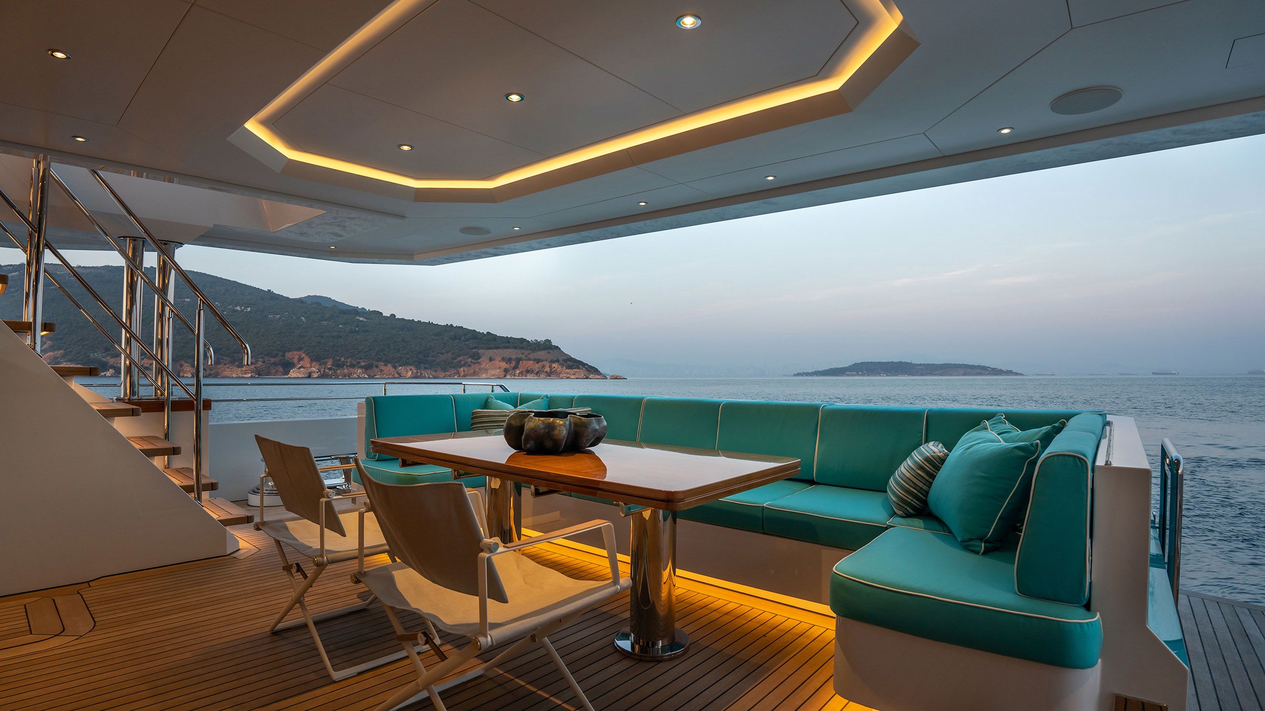 The flybridge boasts 360-degree views
