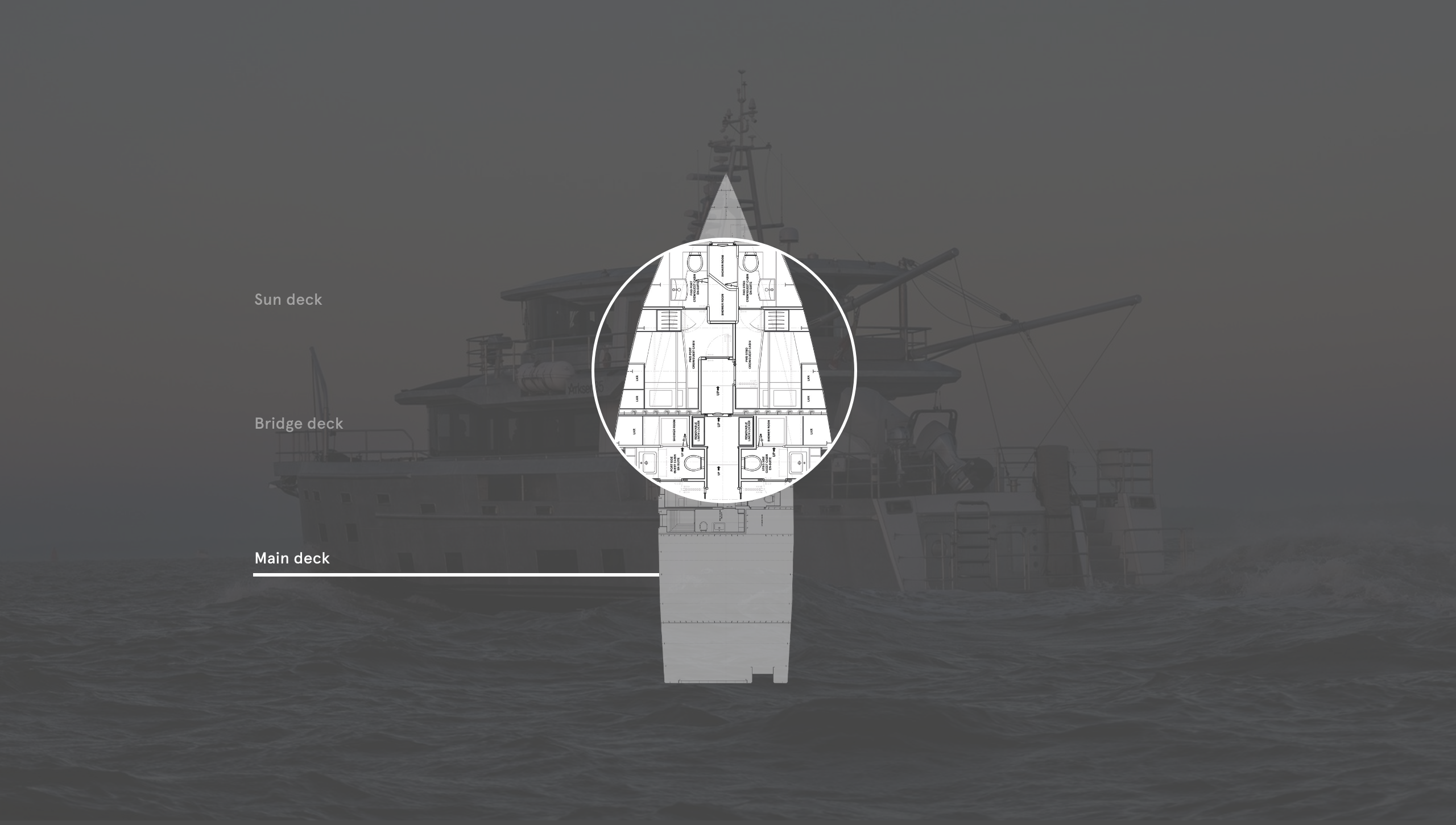 The forward cabins can be used for guests or crew
